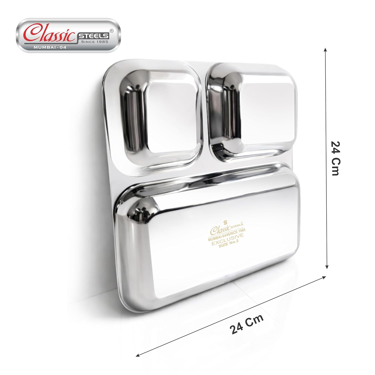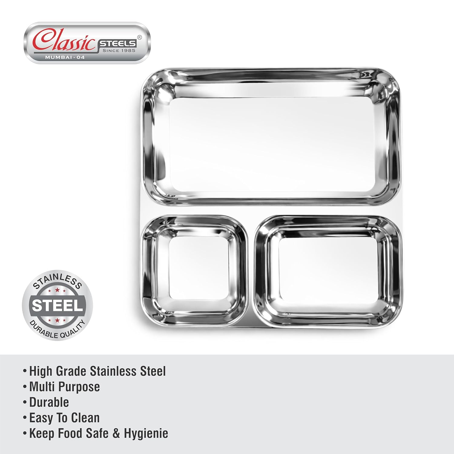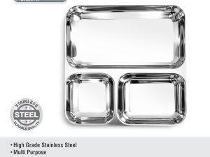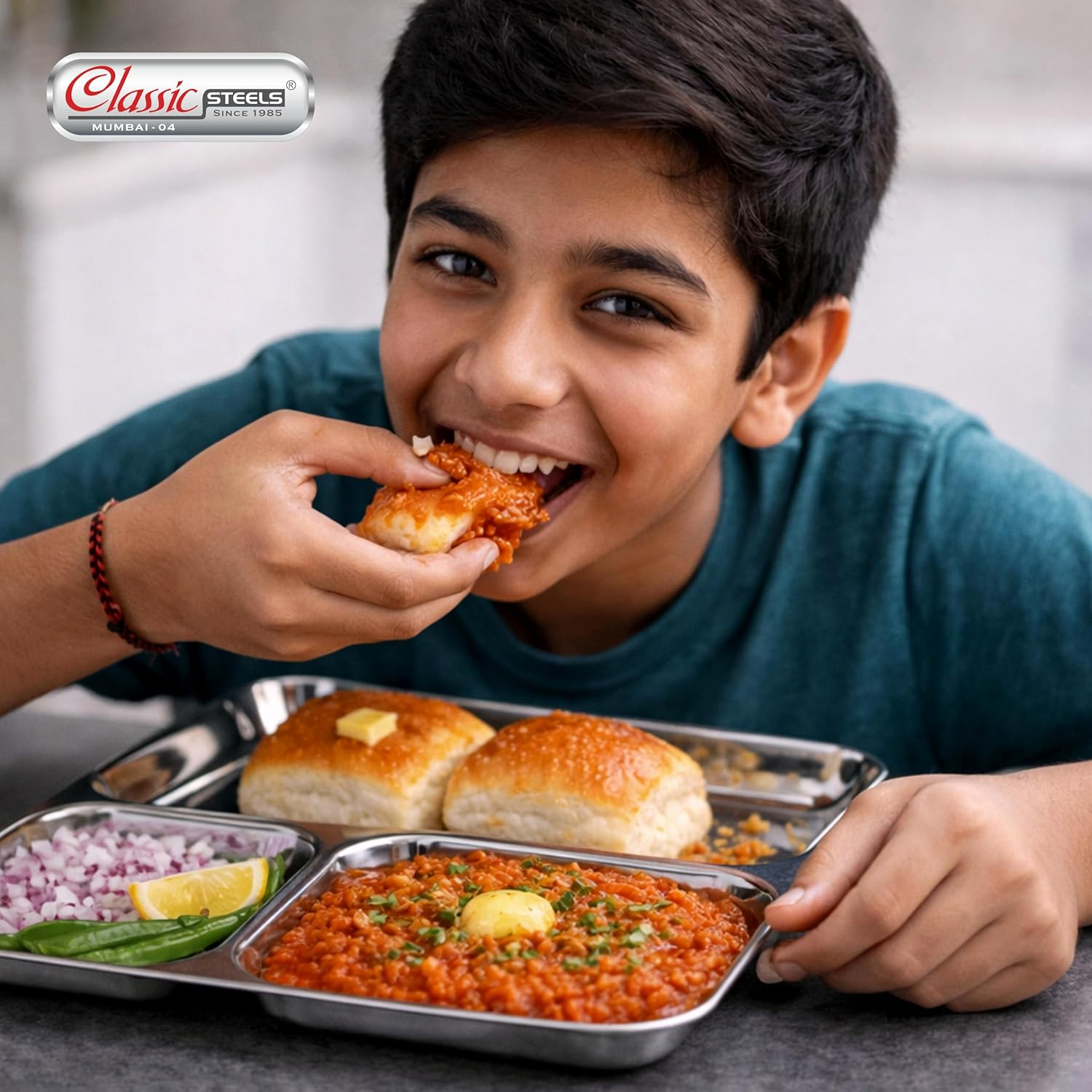 - 3-Section Partition Design: Large compartment with two side sections ideal for pav bhaji, chutney, onions, misal, usal & snacks.