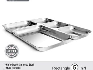 Be the first to review “Classic Steels Stainless Steel 5-in-1 Rectangular Bhojan Thali |(Set of 6) Heavy Gauge Mirror Finish| Dinner Plates with Compartments |Food Grade Meal Tray for Home|Restaurant & Canteen Use”