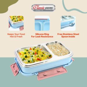 • 🔒 Secure 4-Side Lock Feature : Our lunch box is equipped with a secure 4-side lock feature, keeping your food tightly sealed until you’re ready to enjoy it. No more worrying about accidental spills or leaks – simply lock it up and go!