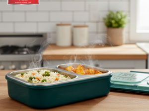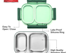 - Dual-Compartment Stainless Steel Tray – Includes a removable food safe steel tray with 2 compartments (400 + 200ml) to separate foods and maintain original flavors.