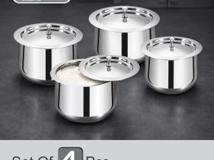 - Heavy Gauge Deep Bowls: Thick steel construction ensures strength and durability, ideal for storing milk, curd, grains, leftovers, and daily kitchen essentials.