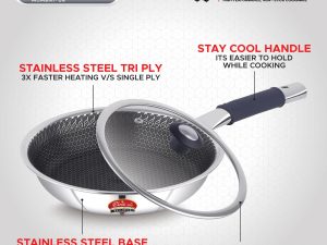 - Triply Construction for Even Heat : triply build with stainless steel and aluminum core offers fast, even heat distribution, reducing cooking time and ensuring perfect results every time.