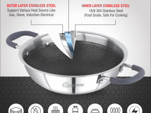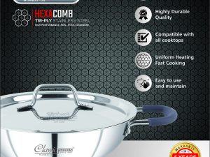 Be the first to review “Classic Steels Hexa Comb Triply Kadai with Steel Lid | Stainless Steel Non-Stick Kadhai for Cooking | Gas & Induction Compatible | 2.5mm Thickness | Durable Stay Cool Silicon Handle”