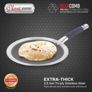 - Crafted with 2.5mm thick triply base for even heat distribution, ensuring soft, perfectly cooked rotis and chapatis every time on any cooktop.