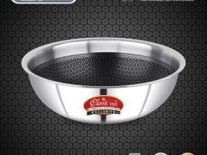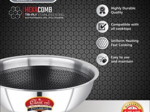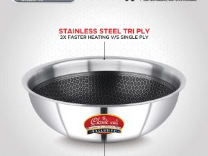 - Hexa comb tasla triply kadhai tasra stainless steel cookware silver non stick gas stove induction base thick base kitchen utensil food grade rust resistant easy clean indian cooking