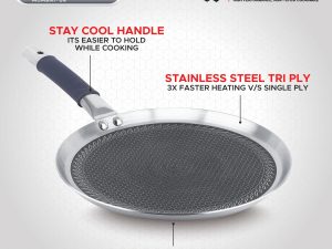 - 2.5mm Thick Base: Ensures heat retention and uniform cooking. Make golden, crispy dosas and soft rotis with minimal oil – perfect for health-conscious families.