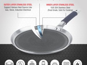 - Premium Triply Construction: Made with 3 layers – stainless steel, aluminum core, and steel base – for even heat spread, faster cooking, and long-lasting durability.