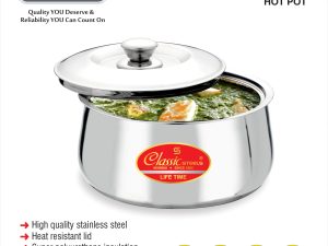 • Stainless Steel Insulated Hot Meal Serving Casserole.