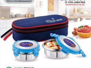 • Food Grade Plastic with Insulated Jacket and Stainless Steel Container: Made from high-quality, food-safe plastic used for the lid and free from harmful chemicals like BPA, this lunch box features an insulated jacket and 100% stainless steel containers. The combination of these elements provides effective thermal insulation, keeping your meals at the desired temperature for longer and ensuring your food remains safe, healthy, and fresh.