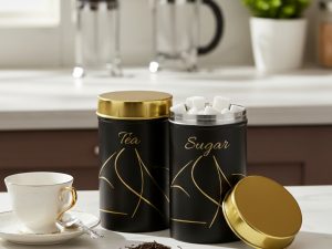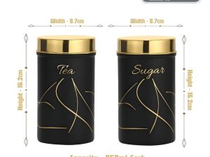 - Elegant Premium Design: Upgrade your kitchen décor with this stylish Tea & Sugar Canister Set featuring a sleek matte finish, gold embossed labels, and luxurious gold lids that add a modern, elegant touch to any countertop.