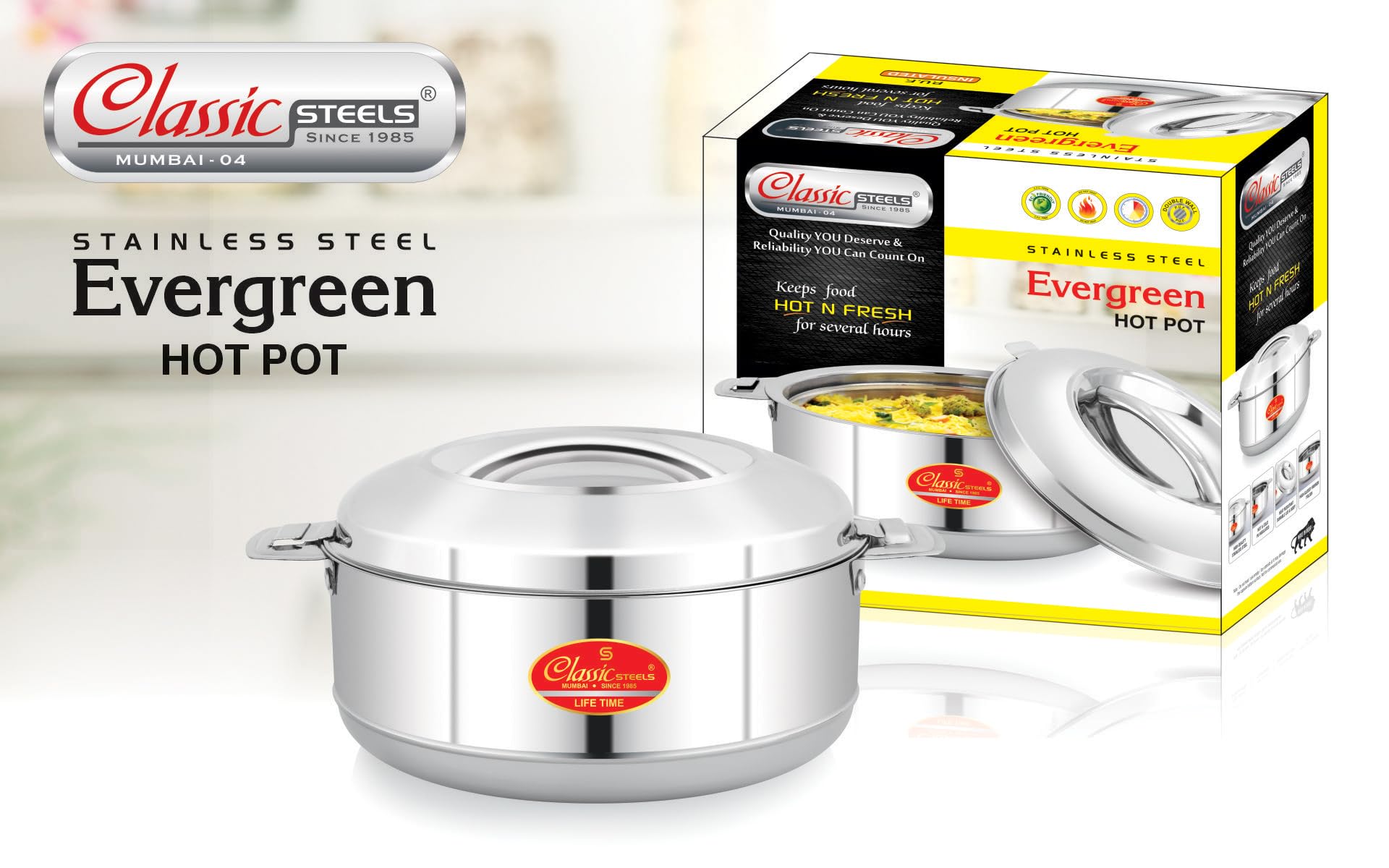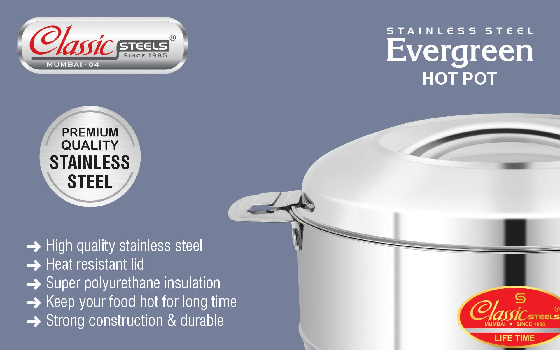 - Classic Steels Evergreen Insulated Stainless Steel Hot Case For Roti Is The Perfect Solution For Keeping Your Food Hot For A Long Time. With Its High-quality Construction And Durable Stainless Steel Material, This Casserole Set Ensures The Highest Quality And Durability. The Hot Box Advanced Insulation Technology And Design Guarantee Efficient Heat Retention, Providing The Benefit Of Hot Meals Wherever You Go. Suitable For Various Ideal Conditions Such As Ovens, Stovetops, And Induction Cooktops, It Offers Convenience And Versatility To A Wide Range Of Target Audiences. This Roti Box For Kitchen Is Easy To Use And Maintain, Designed With User-friendliness In Mind. Its Unique Feature Ensures Easy Cleaning And Maintenance, Solving The Customer Pain Point Of Keeping Food Hot During Gatherings, Parties, And Special Occasions. It Measures 10 Inches And Is Suitable For All Age Ranges, Available In Size Variations. Made In India, Classic Steels Evergreen Insulated Chapati Box For Kitchen Is The Ideal Addition To Your Kitchen. Enjoy The Benefits Of Hot And Delicious Meals, Whether At Home Or On The Go.