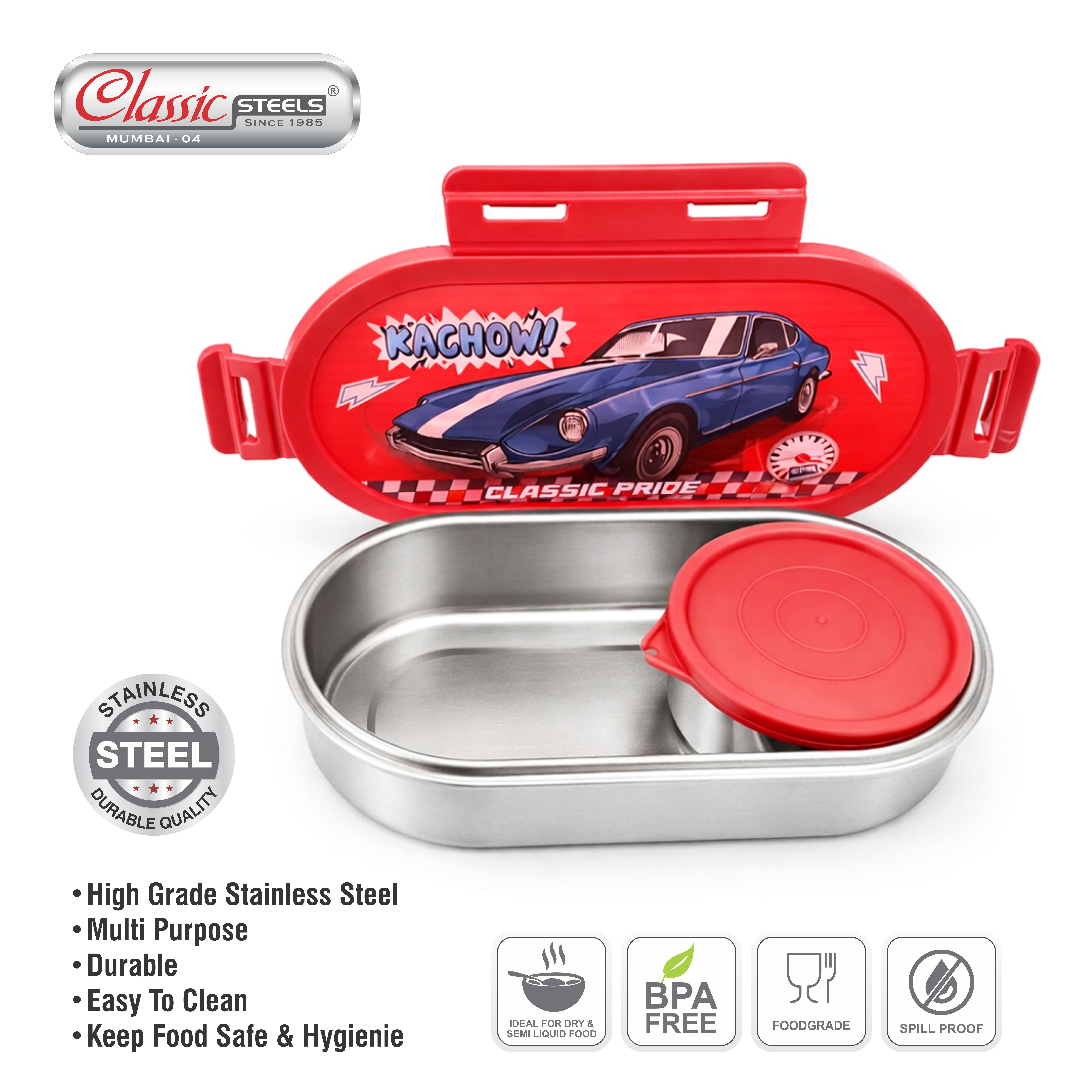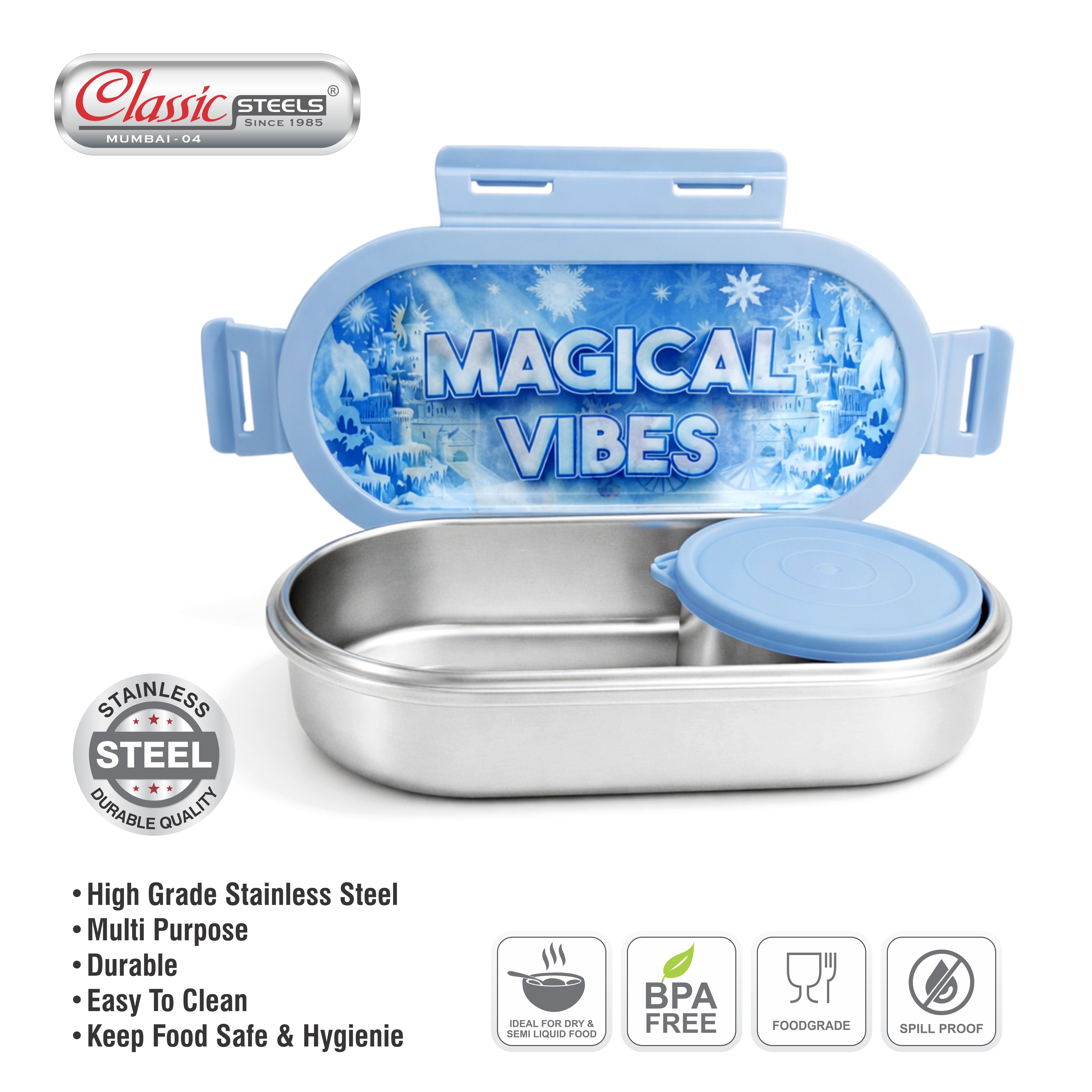 - ADVANCED LEAK-PROOF TECHNOLOGY: Designed with a secure silicone ring seal and 4-side locking clips to prevent spills—even with semi-liquid foods like curries, gravies, or yogurt—keeping school bags clean and dry.