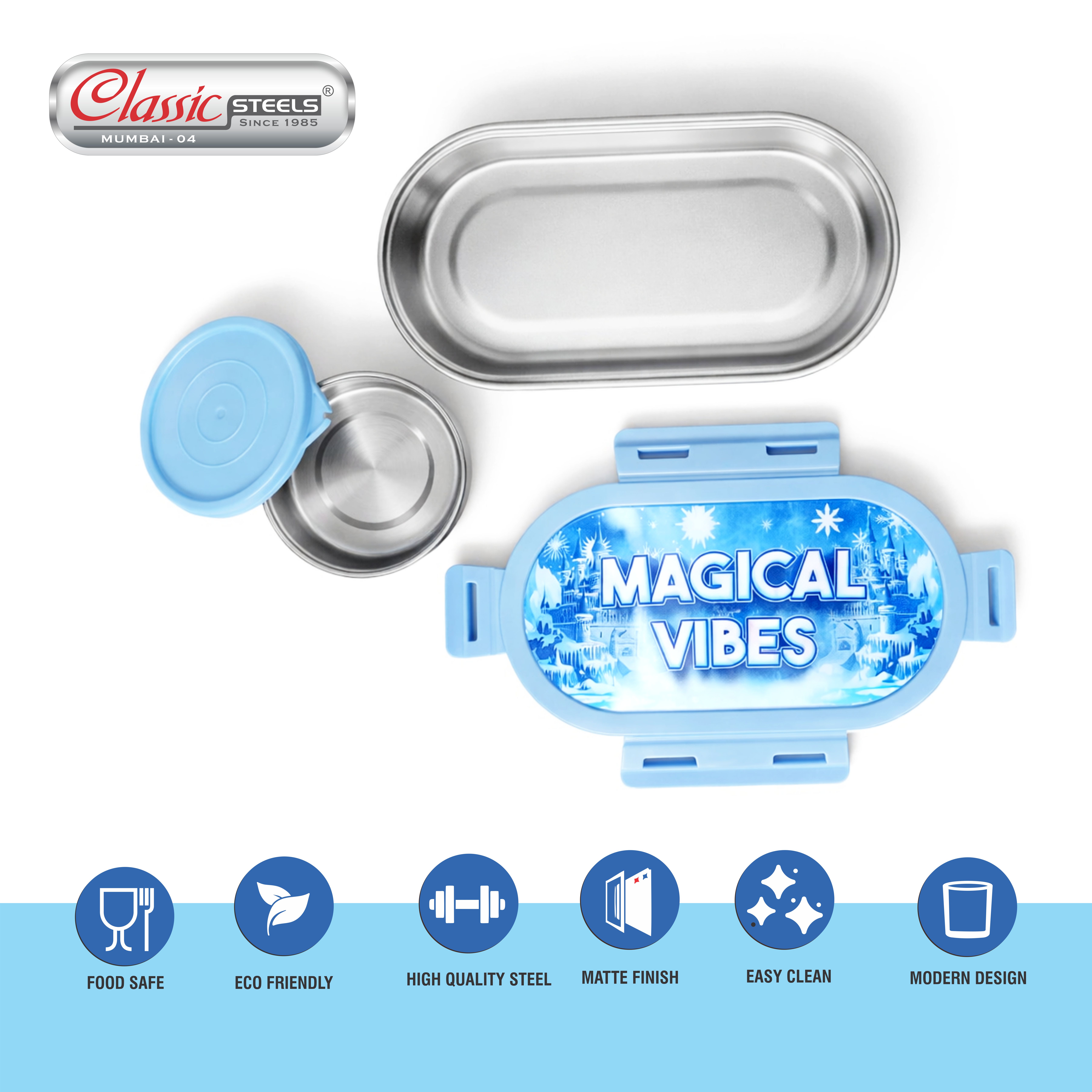 - PREMIUM STAINLESS STEEL & HYGIENIC BUILD: Crafted from high-grade, rust-proof stainless steel with a sleek matte finish, this lunch box is durable, odor-resistant, and easy to clean—built to last through everyday school use.