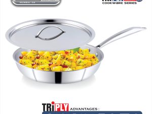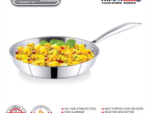 • 𝐏𝐑𝐄𝐌𝐈𝐔𝐌 𝐓𝐑𝐈𝐏𝐋𝐘 𝐂𝐎𝐍𝐒𝐓𝐑𝐔𝐂𝐓𝐈𝐎𝐍 = Crafted with a robust 3-layer body, this triply stainless steel fry pan delivers fast, even heating for consistently perfect results. It brings modern efficiency to everyday Indian cooking traditions.