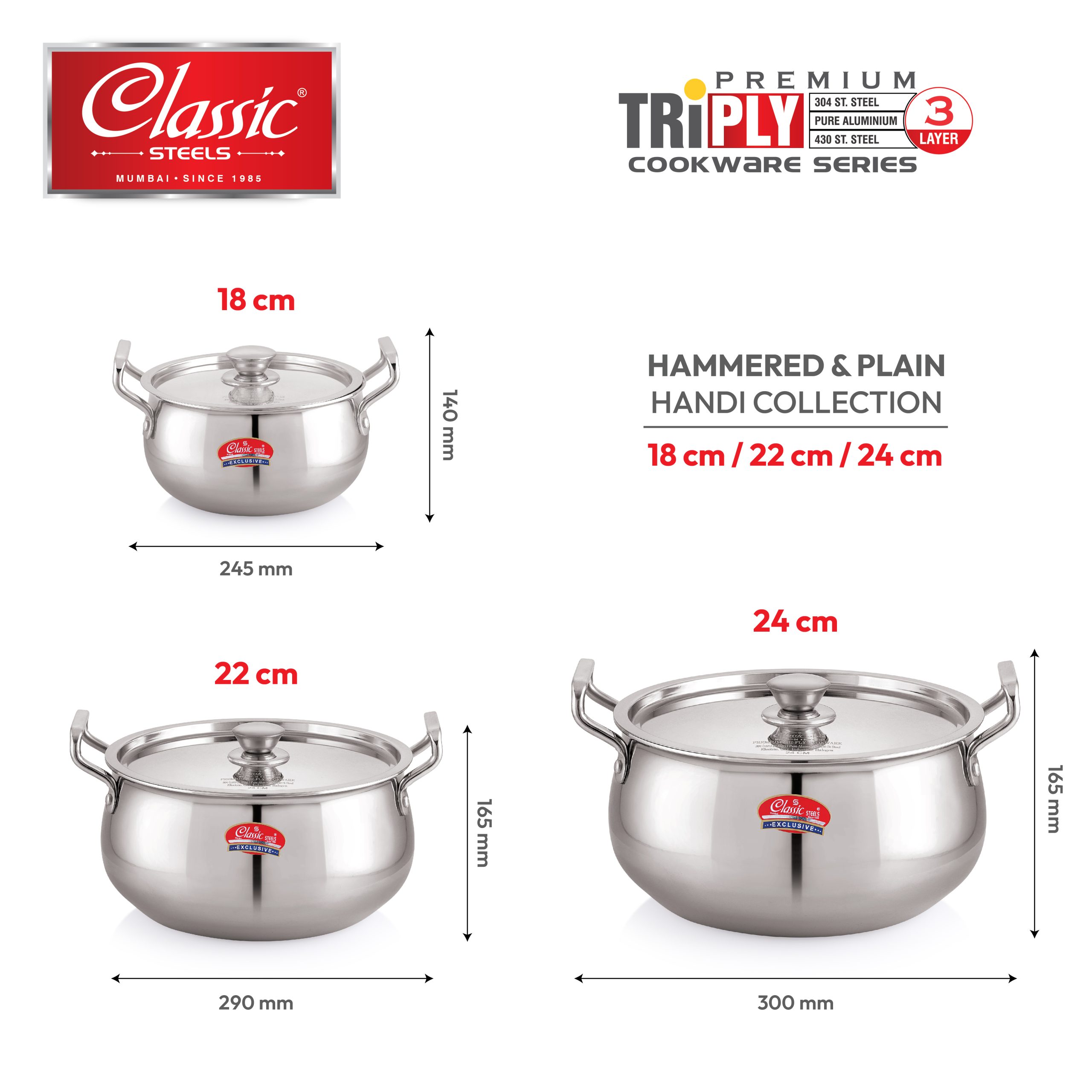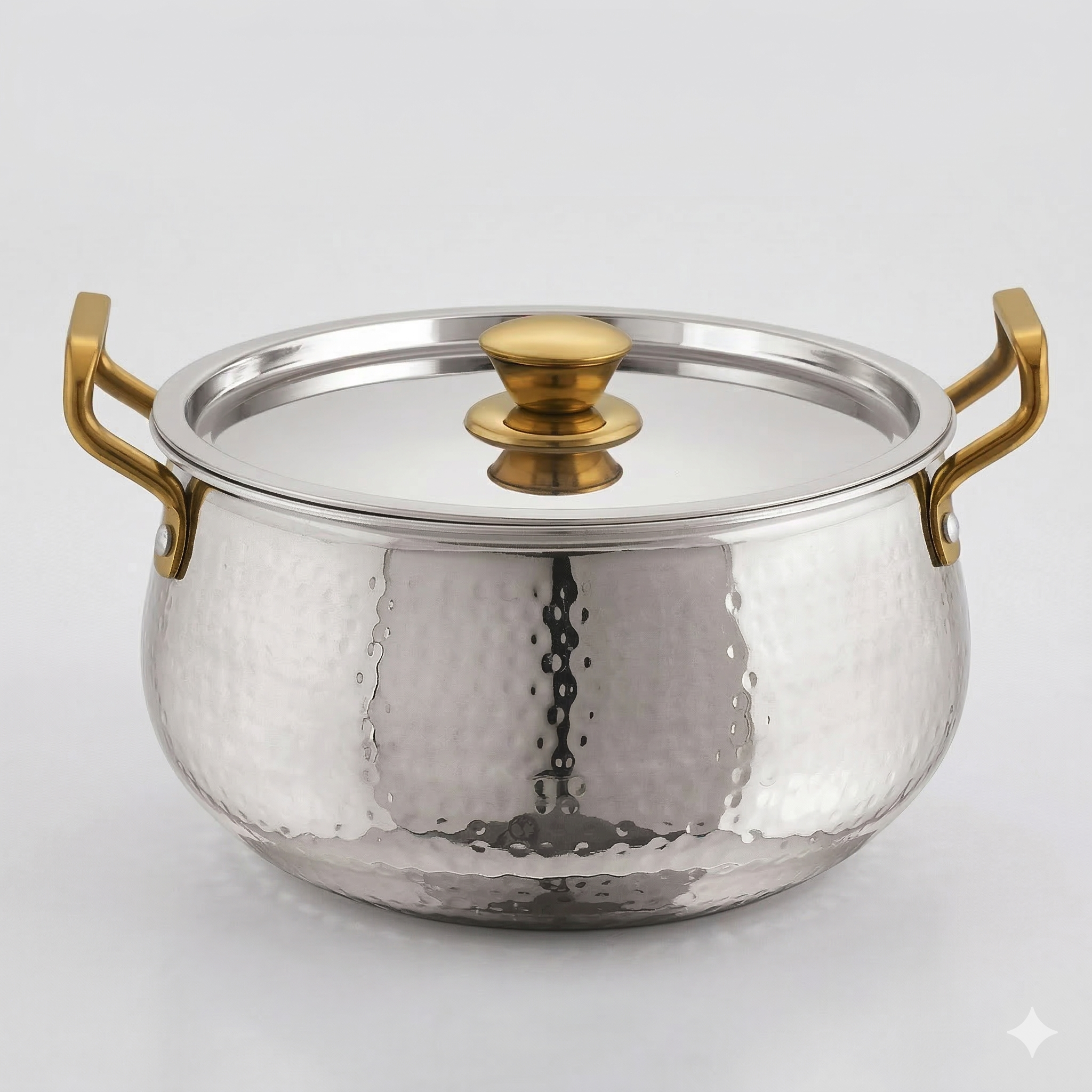 Classic Steels 304 (18/8) grade stainless steel 2.5 mm multipurpose cook & serve Handi | Hammered Finish | with Steel Lid | Gas & Induction Friendly