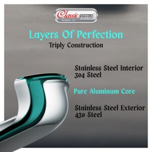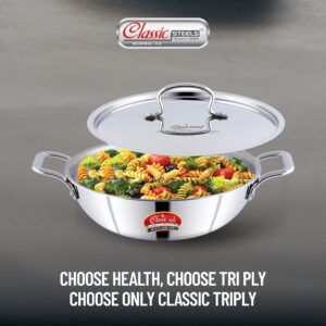 - Triply Stainless Steel Excellence – Made From Premium Food-grade 18/8 Stainless Steel, This Kadhai Boasts Health-conscious Cooking. The Aluminum Layer Facilitates Even Heat Distribution, While The Magnetic Stainless Steel Bottom Ensures Compatibility With Induction Cooktops.