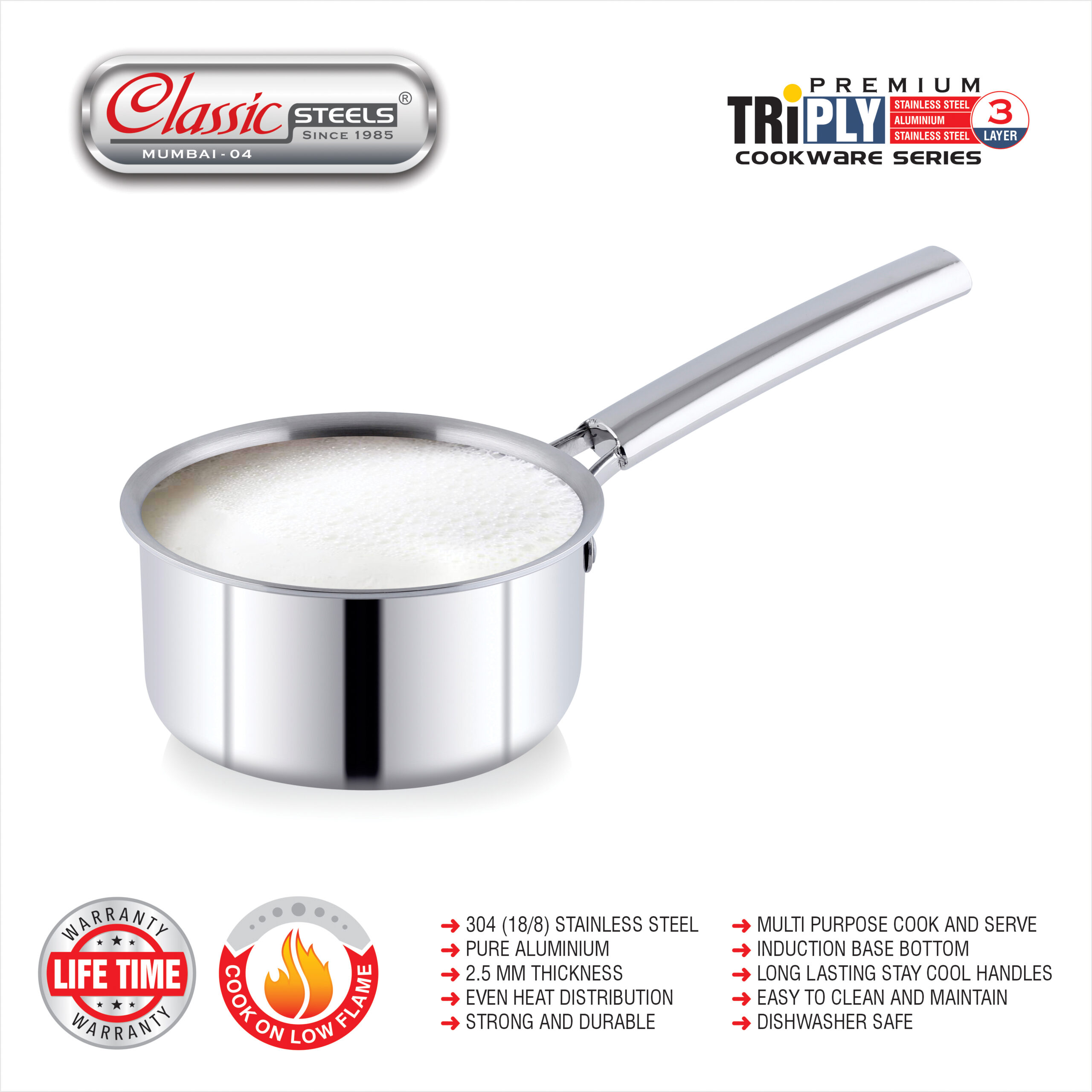 - Faster Cooking: Its construction helps to cook food 2 times faster than ordinary stainless steel cookware